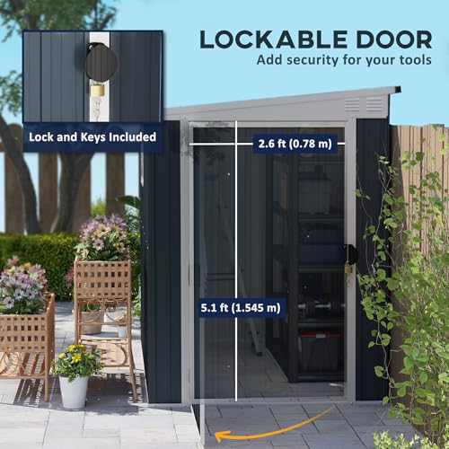 - Secure access: This metal shed features a lockable door for effortless access and added peace of mind. Keep your belongings safe with the included lock and keys, ensuring your tools and equipment are always secure when not in use.