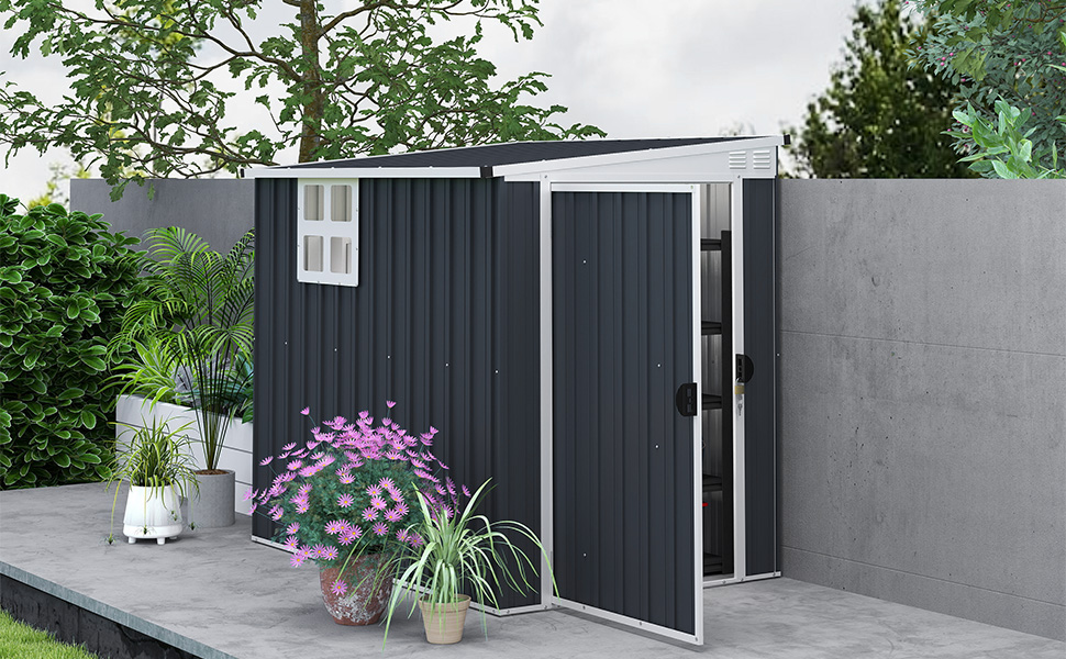 - Weather-resistant roof: With its sloped roof, this garden shed efficiently channels rainwater away, preventing water build-up and protecting your stored items from potential weather damage. Keep your tools and equipment safe, dry and ready for use.