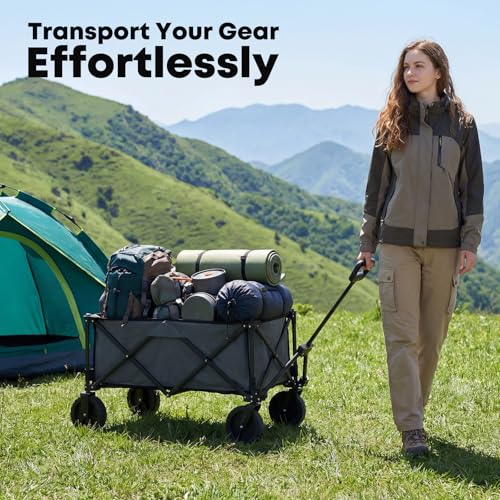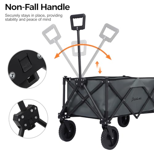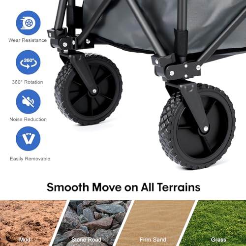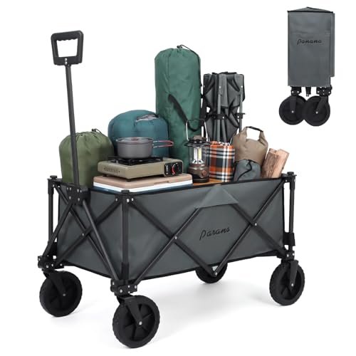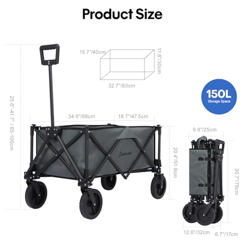 Panana Folding Trolley With Wide Wheels, Foldable Wagon, Portable Camping Cart, Collapsible Trolly With Adjustable Handle, Shopping Trolley Foldaway for Easy Storage (Grey, 150L)