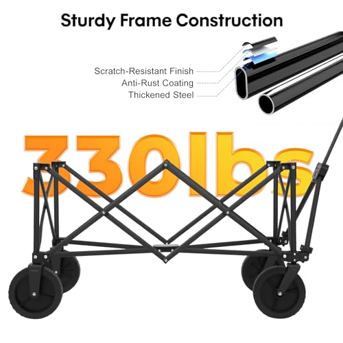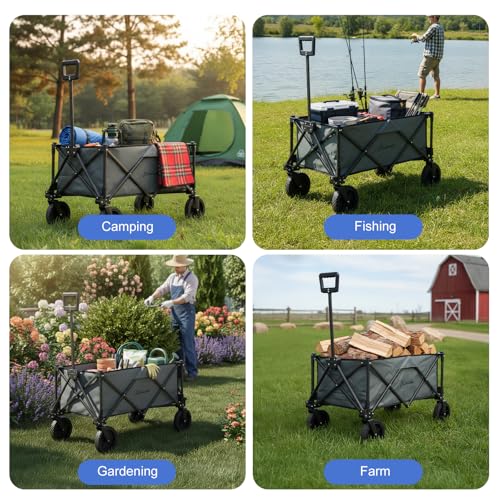 The adjustable handle accommodates people of different sizes, and it can be adjusted at multiple angles to easily pull and operate the all terrain wagon cart