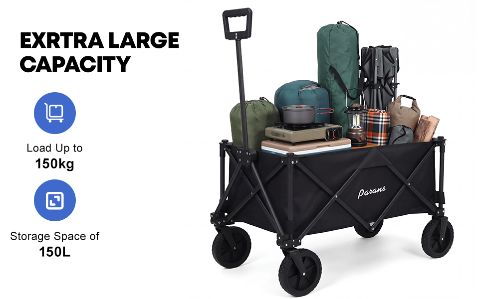 - Large Capacity Folding Trolley: 150L load up to 330LBS/150kg