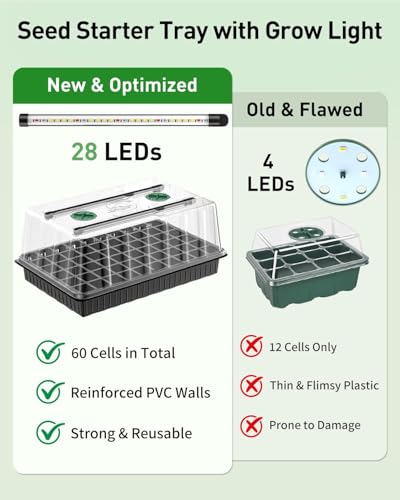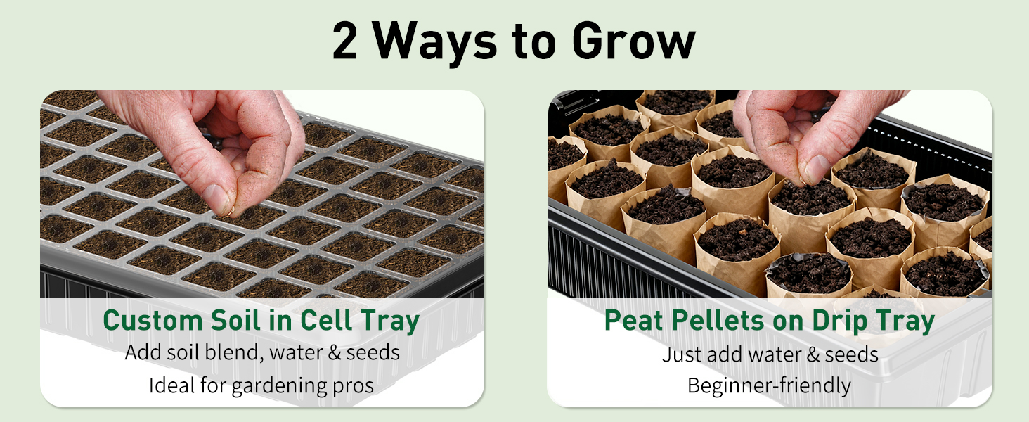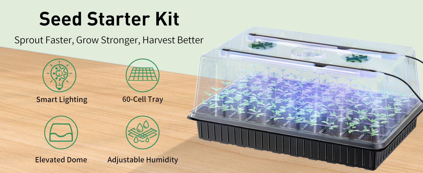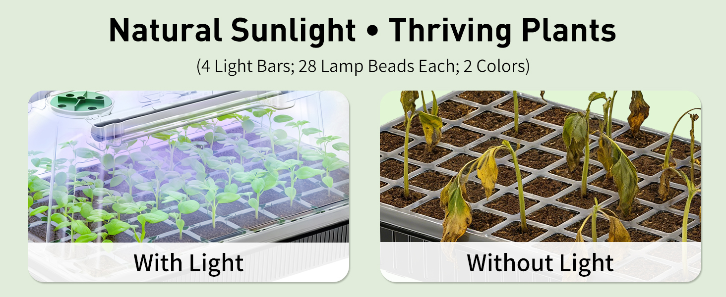 Full Spectrum: Each seed starter tray comes with 2 powerful LED grow light bars that provide full-spectrum illumination. Effectively mimic natural sunlight to boost seedling photosynthesis rates and development from germination to transplant-ready stage
