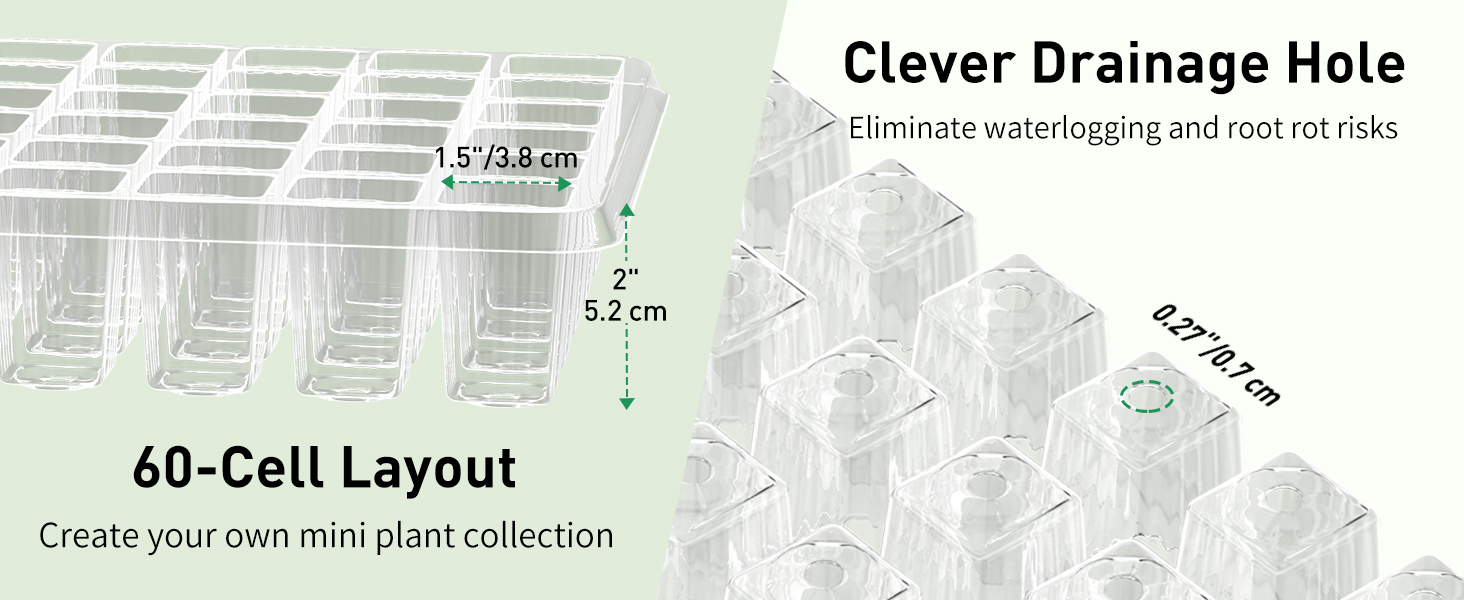 Thickened PVC Material: Reinforced PVC walls resist warping and cracking through countless growing cycles. These strong plant germination trays maintain their shape season after season, perfect for year-round indoor gardening projects