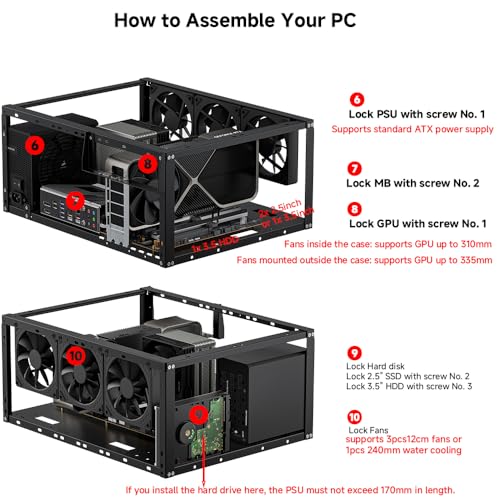 Comprehensive Hardware Support: GPU Clearance: Up to 310mm (with internal fans) / 335mm (with external fan mounting) Storage Bays: 2x HDD + 3x SSD Power Supply: Standard ATX PSU (up to 300mm in length)