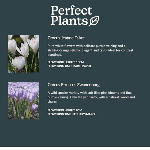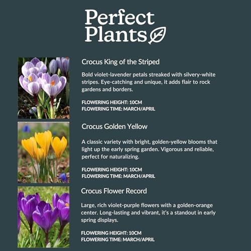 Perfect Plants Signature Crocus 50 Bulb Gift Set – 5 Stunning Spring Varieties (Golden Yellow, Jeanne D'Arc, King of The Striped, Etruscus Zwanenburg), Flower Record, Colorful Spring Flowers
