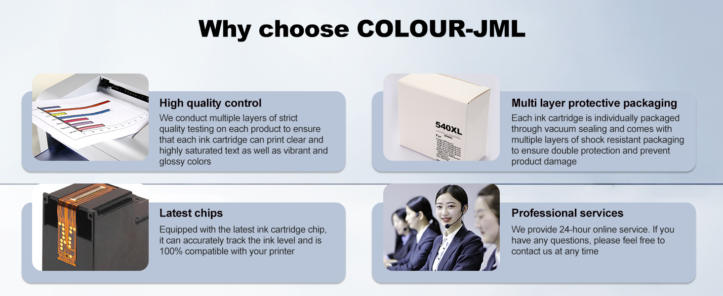 【Reliable Performance】COLOUR-JML 540 xl ink cartridges multipack has ISO9001, ISO14001 and approved MSD certificates. Please confirm the printer model before purchasing the remanufactured canon PG540XL Black ink cartridges (No OEM products).