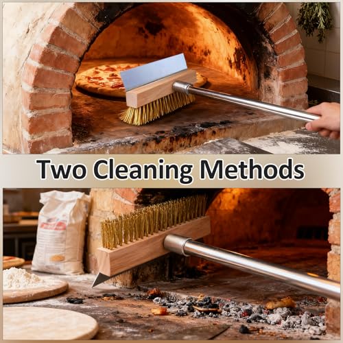 Multi-Purpose: This brush with copper bristles and a scraper isn’t just for pizza ovens. It works great for cleaning barbecue grills, pizza stones, ovens, and more, making it a versatile tool for various cooking equipment.