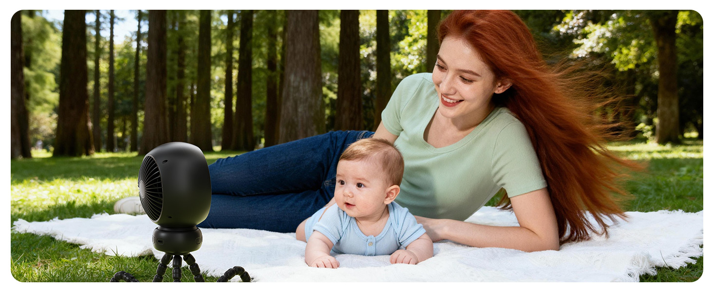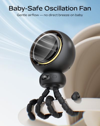 【Safety-First & Secure Design】 Engineered with an ultra-fine, finger-proof mesh to protect tiny hands, meeting the highest safety standards. This premium fan features a reinforced, flexible tripod wrapped in non-slip, skin-friendly silicone, ensuring a rock-solid hold on prams, pushchairs, and car seats. The robust design prevents slipping even on bumpy paths, giving parents absolute peace of mind