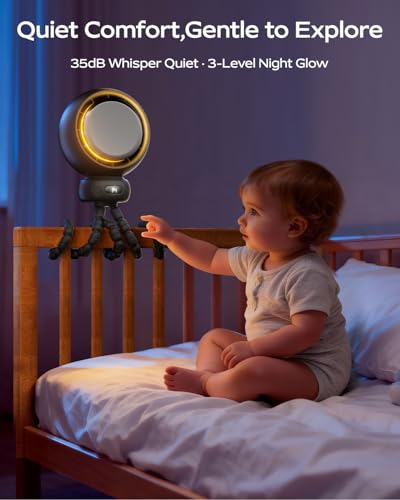 【Ultra-Quiet & Versatile Portability】 Operating at a near-silent 35dB with a high-precision motor, it ensures a peaceful, undisturbed sleep for your little one. The detachable fan head transforms seamlessly into a stable desk fan for home or office use. It is the ultimate baby travel essential, blending high-tech functionality with elegant, portable design