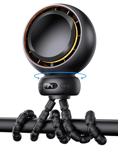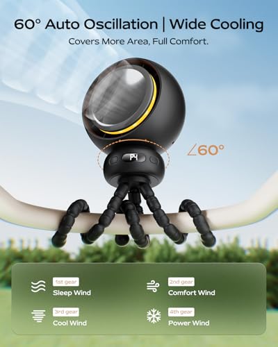 Portable Pram Fan – 60° Auto Oscillating Stroller Fan, 4400mAh Rechargeable, LED Display & Night Light, Flexible Tripod Clip for Pushchair, Buggy, Car Seat, Travel Essentials (Black)