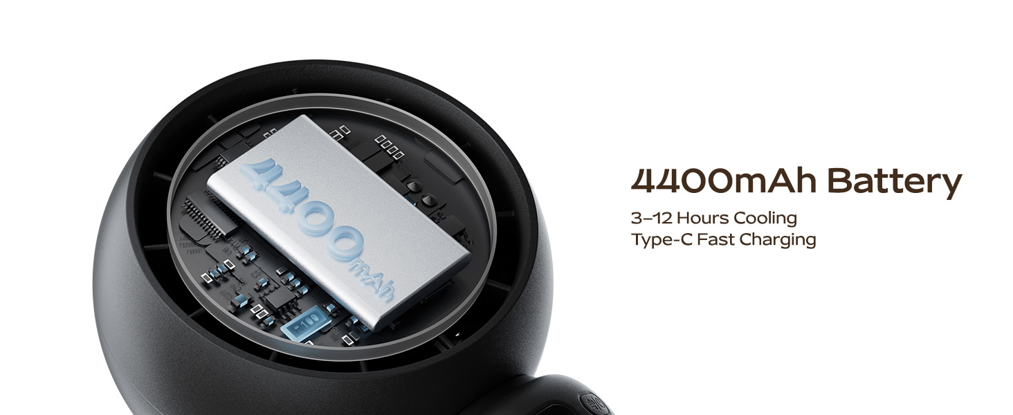 【4400mAh Battery & 12H Runtime】 Powered by a high-capacity 4400mAh battery, it delivers 3 to 12 hours of continuous cooling (fan only, speed dependent). It supports 4-hour rapid charging via the included USB-C cable and functions while charging. This advanced efficiency ensures your baby stays comfortable throughout long day-trips without frequent recharging