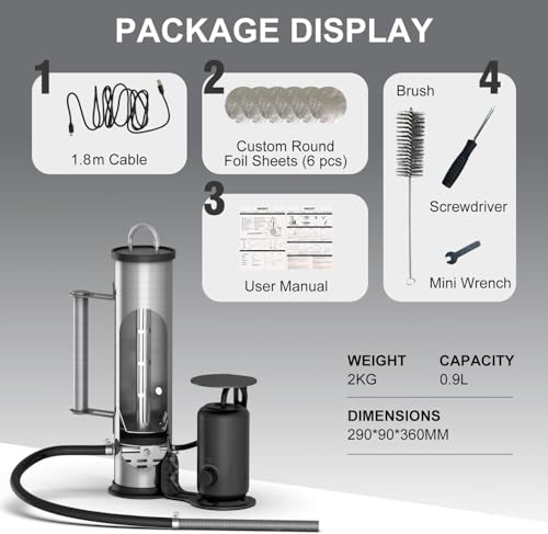 BUILT TO LAST | Everything You Need to Get Started Crafted from durable 304 Stainless Steel and high-quality silicone, the Smokit is built for long-lasting performance. The kit is powered via a standard Type-C USB port and includes a 1.8m cable, a cleaning brush, a mini wrench, a screwdriver, and 6 custom foil sheets. Everything you need is in the box to begin your smoking journey. (Note: Power adapter or power bank is not included ).