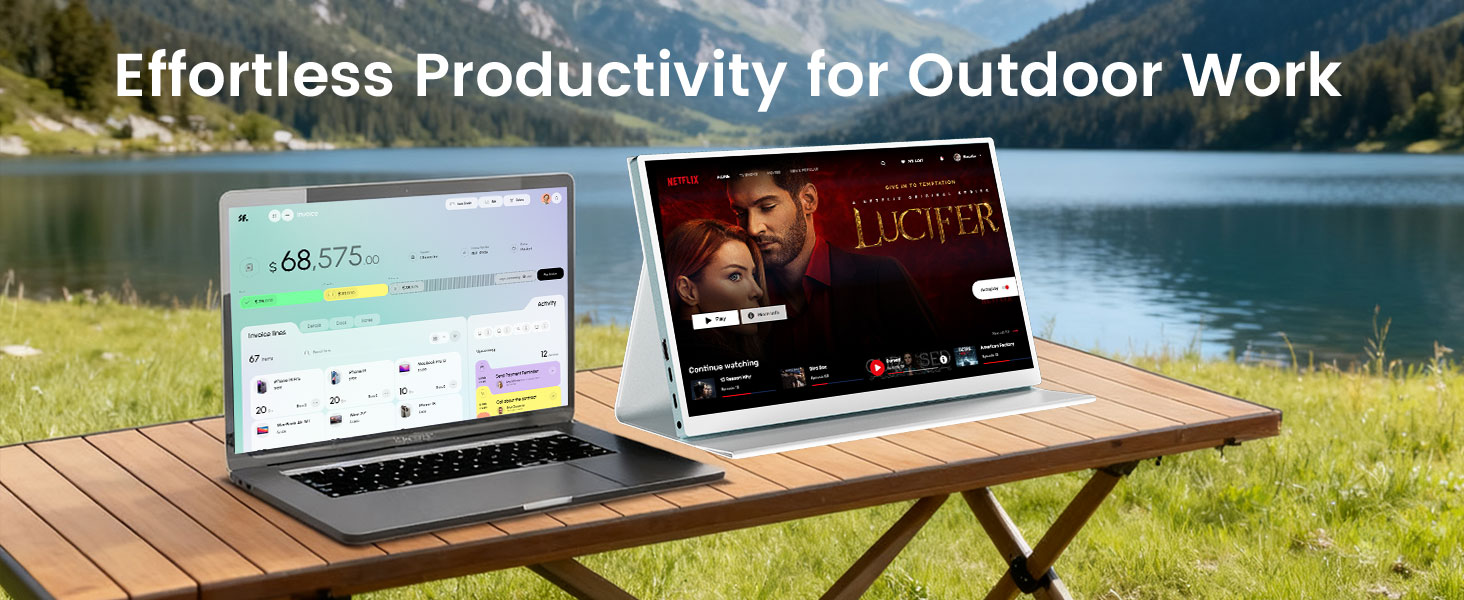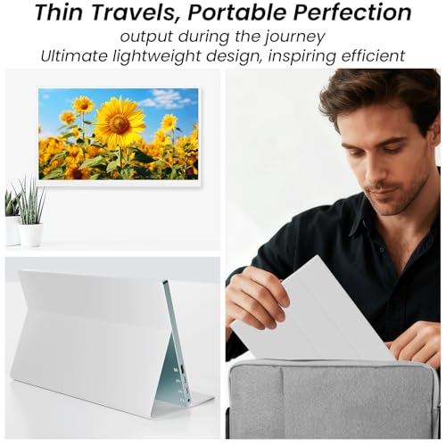 - Portable & Lightweight Design:Weighing just 2.2 lbs , this monitor is incredibly lightweight, making it perfect for professionals, gamers, and anyone who needs an extra screen on the go. It is easy to carry in your bag or backpack without taking up too much space. The metal gray + white design is sleek and durable, fitting seamlessly into any environment, whether for business meetings or home entertainment. Its compact design also makes it the ideal choice as a portable secondary screen for travel or business trips, allowing you to enhance your work or entertainment experience wherever you are.