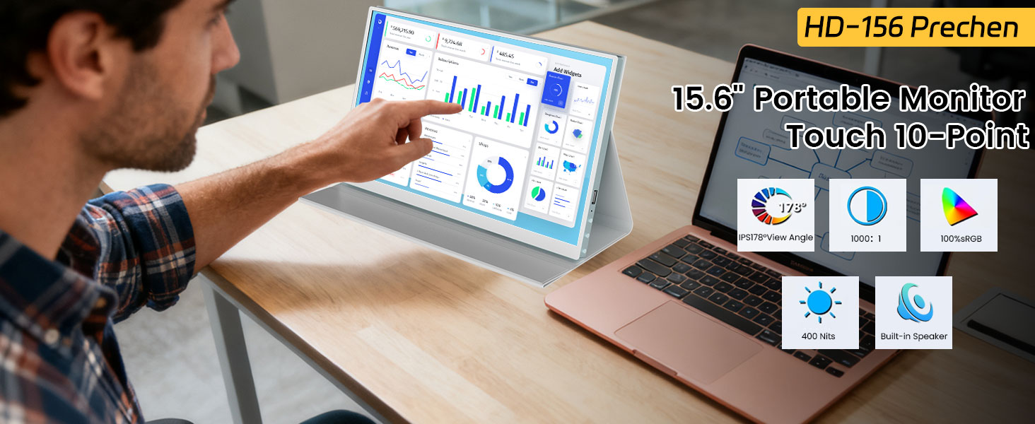 Prechen 15.6'' Touchscreen Portable Monitor, FHD IPS