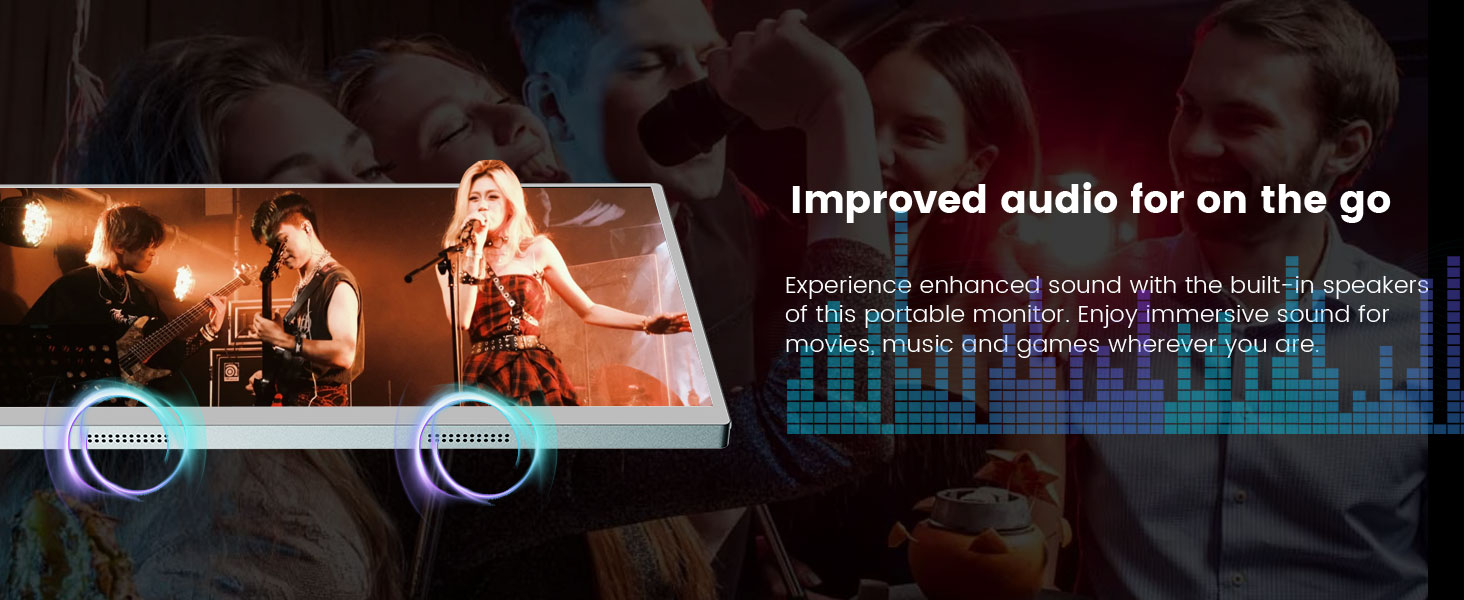 - Built-in Speaker & Protective Case:15.6 Inch travel touchscreen monitor comes with built-in stereo speakers, offering clear audio without the need for external speakers. You can enjoy sound directly from the monitor, which eliminates the need to carry additional audio equipment, making it perfect for mobile work or outdoor use. The monitor also includes a protective case that ensures the display is safeguarded against scratches and other external damage. This case is especially useful for traveling, ensuring your monitor stays safe and portable. With its compact and durable design, this protective case makes it an ideal companion for business trips or travels.