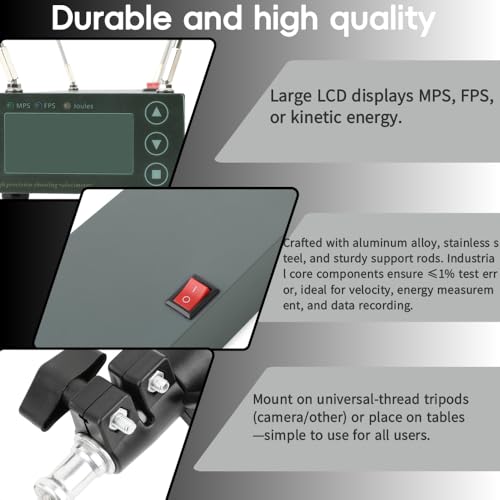 ✅ Easy to Use & Place: Large LCD shows MPS, FPS, or kinetic energy. Mount on universal-tripods (camera/other) or place on tables—simple for all users.