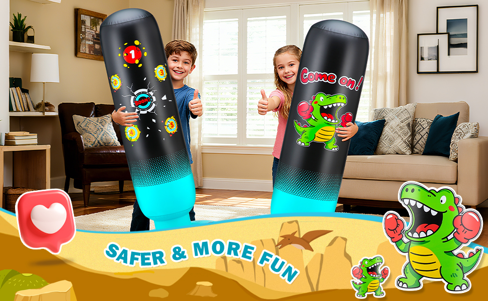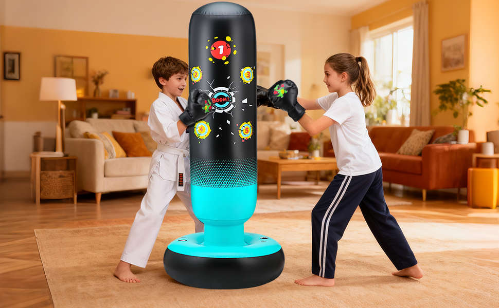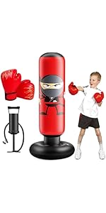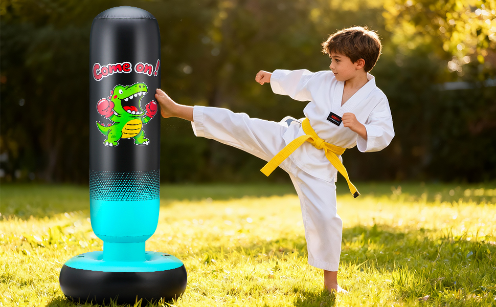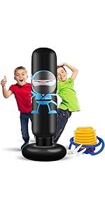 【Space-Saving Convenience】Unlike bulky toys or gym equipment, this kids punching bag is easy to store. When not in use, it can be deflated and folded away, making it ideal for families with limited space. This feature also makes it easy to transport, so it can be used indoors or outdoors