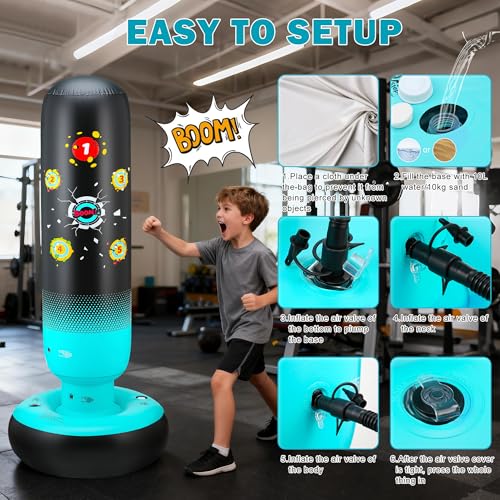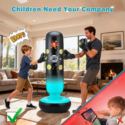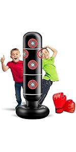 【Great Gifts for Kids 3-12 Boys Girls】By punching and kicking the bag, kids can improve their hand-eye coordination, balance, and reflexes. It’s a great way to help them refine their motor skills in a playful, non-competitive environment
