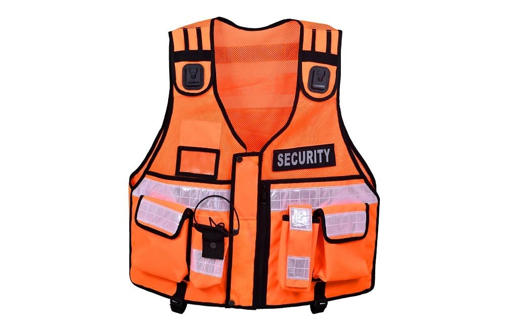 Hi Viz Tactical Vest Security , Enforcement, CCTV, Dog Handler Tac Vest WARNING: This VEST is registered design (No:6027379) and is protected under UK copyright law. Reproduction in full, part, or in a modified form is strictly prohibited and legal action will be taken straight away” Note: Wholesale orders are also welcome on reasonable prices for bulk quantities. – This adjustable Hi Viz vest is made with Nylon 600D Cordura and quality strong mesh fabric. – Hight Visibilty Scotchlite tape around the vest to give hi visibility at night time. – Ideal for Security Officers, Community Wardens, Enforcement Officers, Dog Handlers , and First Aiders. – It will fit sizes up to XXXL and may fit a larger size depending on body shape and clothing worn underneath. – On the rear of the vest there is a strong carry handle for when the vest is fully loaded or in the – Centre front YYK zip with covered Flap with Velcro to Place different badges. – REMOVABLE Velcro patch so you can fit your own badges. case of emergency to drag the unconcious/Injured officer to the safe place. – Velcro adjustment on the shoulders and around the waist help you get the perfect fit. – On the front you have two utility click holders for a radio, mike, CCTV camera, or a Click Doc adaptor. – There is a clear window pocket for your SIA License or other ID badges also there are two plain blank Fabric patches at front and back to Give the staff number. – The vest has a radio pocket with elasticated securing string strap. There is also a sleeve for a small Fire Extinguishers / torch with securing flap. – Back Pocket with too zips ank blank screen to give Staff number. – Front and back hem straps with buttons to attach the vest with trousers’ belt for safety