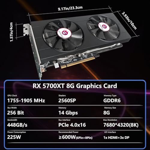 GPVHOSO Radeon RX 5700 XT 8GB Graphics Card 2560SP GDDR6 256bit Computer Graphics Cards GPU PCI-e 4.0 x16 HDMI/DisplayPort*3 Interface,AMD Video Cards for PC Gaming and Office, Support Up to 8K