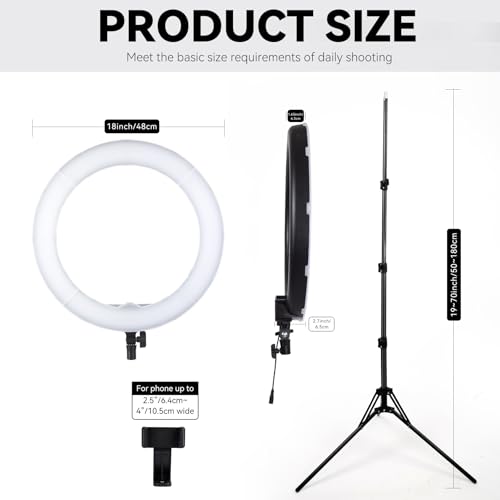 Ring Light Kit 18‘’ 55W 5500k dimmable LED Light, 70‘’ Stand, Phone Holder, Suitable for Outdoor Short Video Shooting, Studio Video Photography Lighting, Selfies and Live Streaming (RL-18)