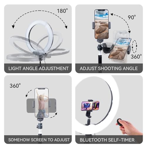 18-inch / 45-centimeter circular light with a stand, LED light, 70-inch floor stand and rotating phone stand, suitable for mobile phone live streaming, camera shooting, etc. Perfect studio lighting, suitable for beauticians, barbers, eyelash extension tattoo makeup artists, youtube users, Douyin content creators, live streaming, selfies, and can also be taken outdoors for supplementary lighting work