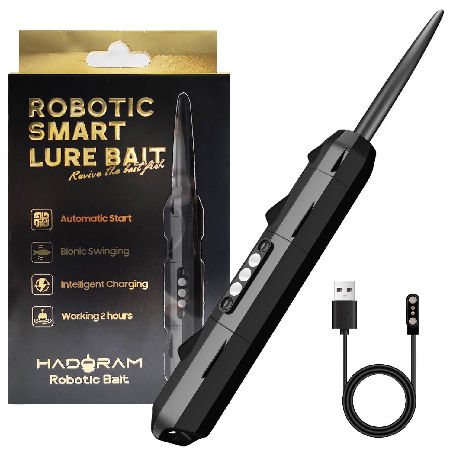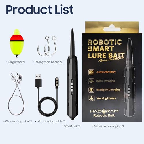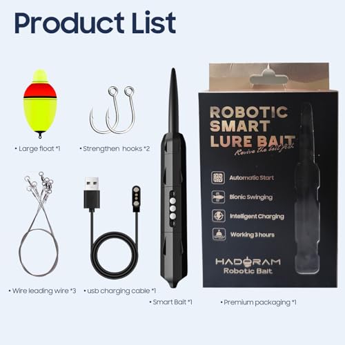 1.Stronger battery life:high-capacity lithium battery, continuous working time of more than 2 hours. 2.Automatic start and power off: With liquid level sensing contacts, it automatically starts up when dropping into water. 3.High-strength shell material: The shell is made of pressure-resistant and corrosion-resistant high-grade plastic material. 4.Exclusive ultra-dynamic waterproof deviceThe exclusive ultra-dynamic waterproof device is designed to provide waterproof depth of up to 300 meters. 5.Bionic design: Simulate the swing frequency of fish swimming through software algorithms and emit low-frequency sound waves to attract fish. 6.Reusable: Robust and reliable wiring hole design,which can be connected with independent sub-wires for repeated use. 7.Smart charging: Intelligent magnetic charging design, with a cycle life of over 500 times.