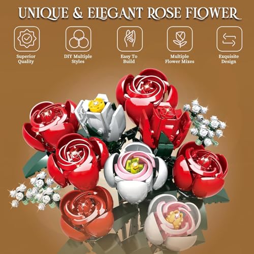 - HIGH QUALITY BOUQUET BUILDING KIT: The rose bouquet block set is made of high quality ABS material, which is hard wearing and smooth surface to ensure our safety during play. The Creative DIY Building Block Floral Set employs precision cutting techniques and advanced colouring processes to ensure the blocks fit together perfectly