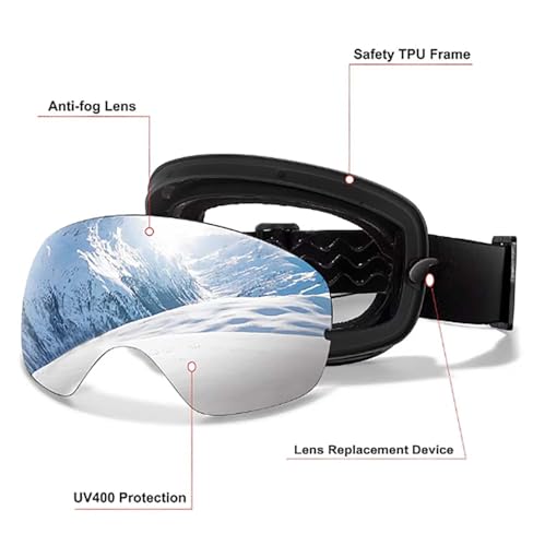 Rosglaco Ski Goggles Original, Unisex Frameless Snowboard Goggles with Interchangeable Lens 100% UV400 Protectio
