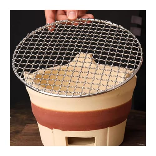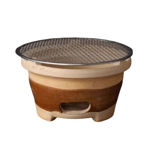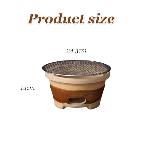 Round Hibachi Charcoal Grill, Mud Stove Barbecue Outdoor Clay,household china-style hot pot stove with Grill Net Charcoal Stove,for Camping Or Home(24.3x14cm)