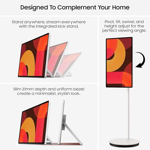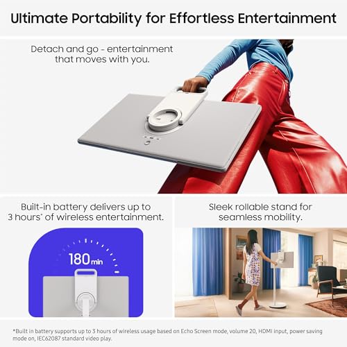 Samsung 27 inch The Movingstyle QHD Portable Touch Screen Smart TV with Buint-in Battery, UE27LSM7FAXXXU, LED Display, 120Hz, Movable Floor Stand, HDR10+, Dolby Atmos [Energy Class F]