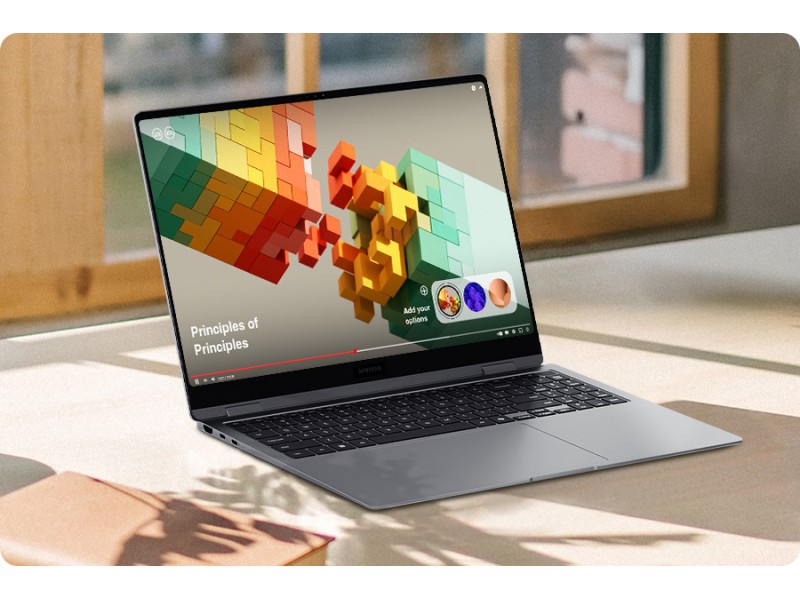 Thanks to the Galaxy Book5 Pro 360's touchscreen, your fingertips maintain control of the laptop. Navigate through applications and menus, edit content, fine-tune project details, and much more – with intuitive multi-touch gestures for high productivity and creativity.⁶