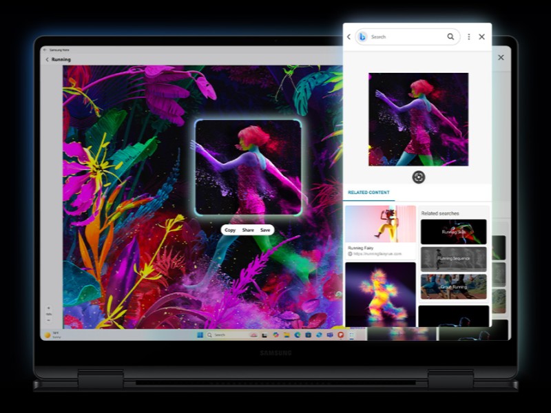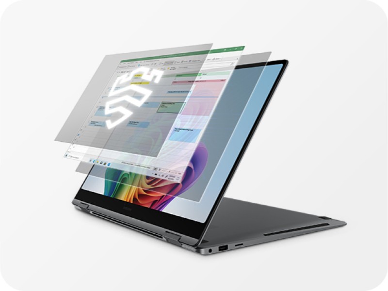 Galaxy Book5 Pro 360 supports intelligent Copilot+ PC and Galaxy AI features, enhancing your everyday laptop productivity and creativity. Use AI features such as AI Select to instantly get search results for text, images and QR codes.¹⁵ ³¹ ³² ³³ ³⁴