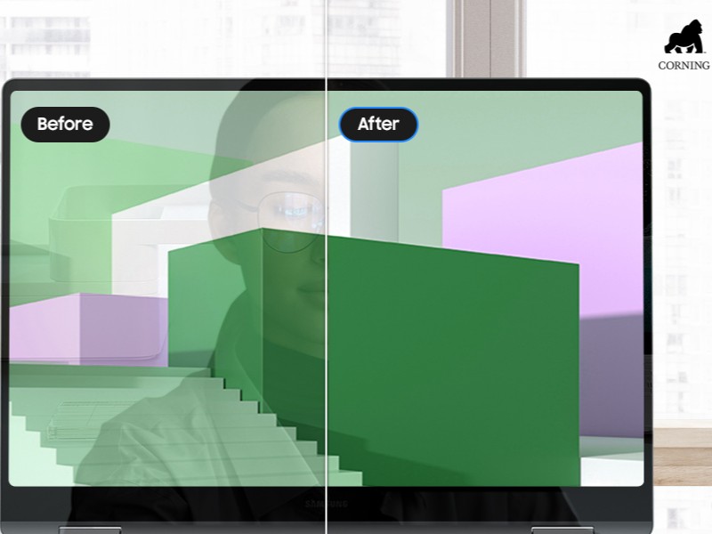 Thanks to Corning Gorilla Glass with DX, you can see every detail on the anti-reflective display. The treated display glass, with a reflection factor of less than 2%, reduces unwanted surface reflections and helps keep the image clear and visible from different viewing angles.⁶ ²⁴