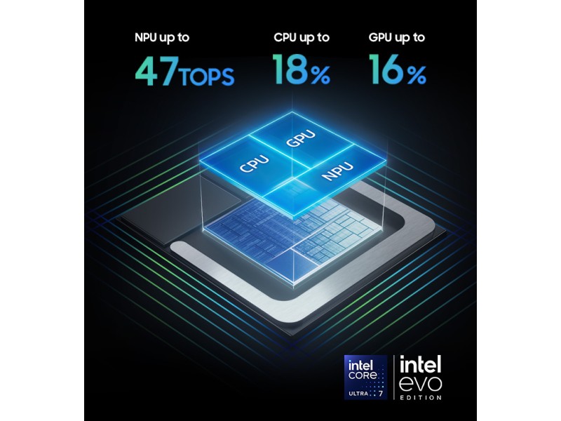 - POWERFUL AI PROCESSOR: Experience transformative AI performance with the super-fast Intel Core Ultra processor (Series 2), featuring upgraded graphics and an advanced NPU for next-level power, with up to 47 TOPS.¹ ²