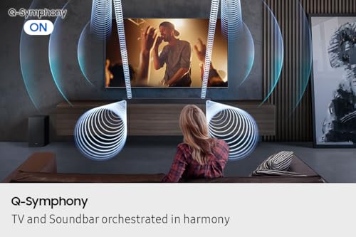 Q-SYMPHONY: With Q-Symphony, AI separates voice and background sounds for playback through the optimal channel. Now you get crisper dialog and more immersive 3D surround sound, playing through your TV speakers and soundbar in complete synergy