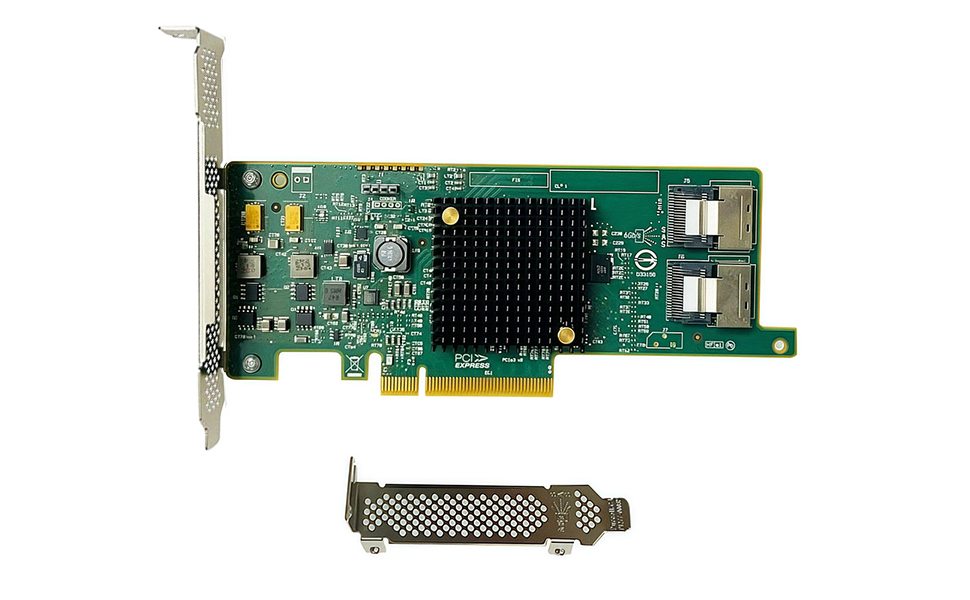 - Host Interface: PCIe 3.0 x8; Internal Connectors: 2× Mini-SAS SFF-8087. –Direct attach up to 8 drives, and expand via external SAS Expander for large arrays