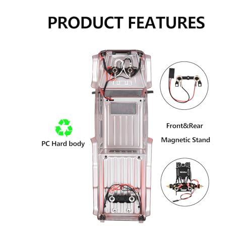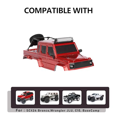 Integrated Lighting System: This scx24 hard body comes with pre-configured front headlights, roof top lights, and rear brake lights, ready to elevate your 1/24 RC crawler's scale appearance and nighttime running capability