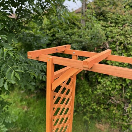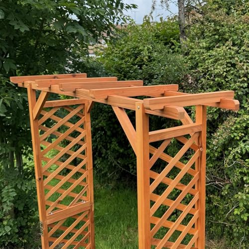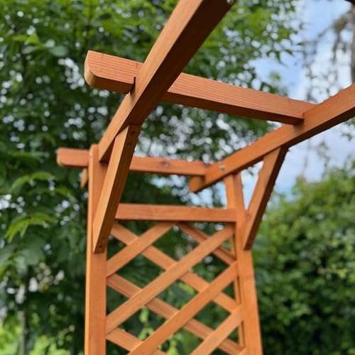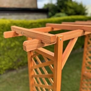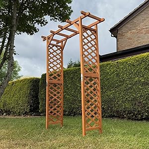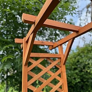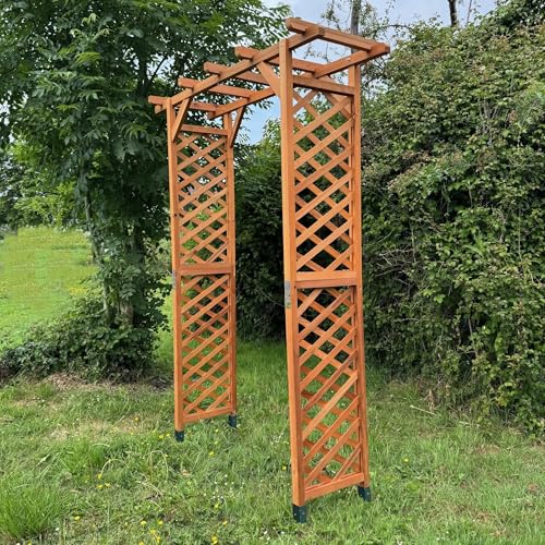 This wooden arch is decorative, elegant and strong enough to support the most abundant of climbing plants such as honeysuckle, clematis or rambling roses. It will also create a stunning effect if intertwined with more than one plant variety and will fit in perfectly whether used to separate different garden areas or as a frame for a walk through.