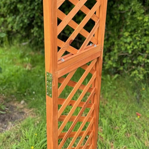 Featuring diamond trellis panel sides with a flat top, this arch stands 213cm tall and 160cm wide, making for an eye catching garden feature; The width of walkthrough is 110cm.The arch legs can be sunk into soil, concreted in for extra stability and strength, or used with metal ground spikes, a pack of 4 of which are included.