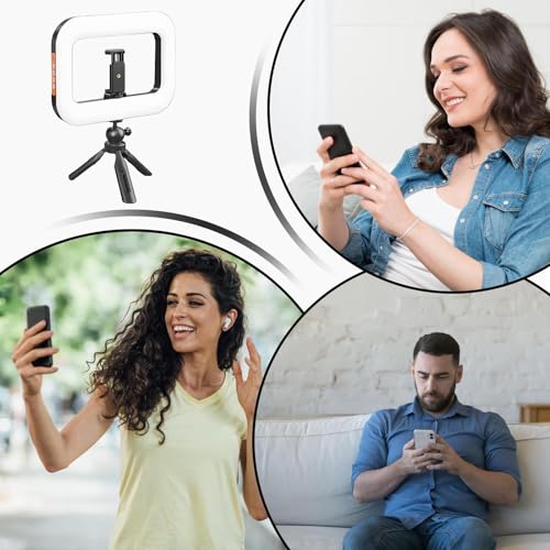Portable Travel Lighting: Thanks to its robust 8000mAh power supply, this portable ring light provides uninterrupted lighting for up to 6 hours. for adventures and travel without looking for an electrical source.