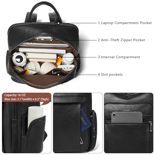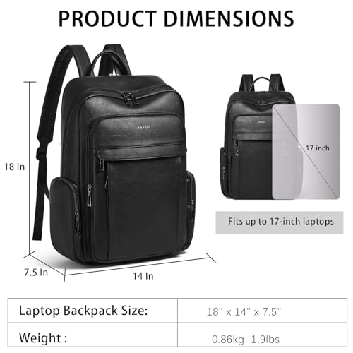 Independent Laptop Bag: The vegan leather backpack size is 14 " (L) x 7.5 " (W) x 18 " (H); weight: 2.2lbs. It easily holds your laptop 17 inches. The independent laptop pocket provides enhanced protection for your laptop. It is suitable for use as a student backpack, business backpack, work backpack, airport backpack, travel backpack or everyday fashion backpack, helping you to keep your belongings organised.