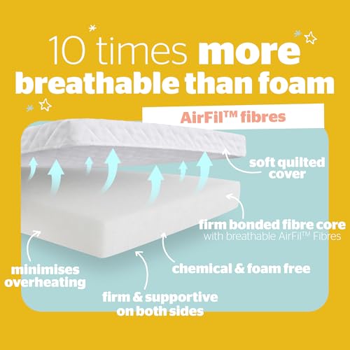 BREATHABLE AIRFIL FIBRES: Made with breathable AirFil fibres to help prevent overheating and keep your little one at a comfortable temperature to reduce sleep disturbance. Proven to be 10 times more breathable than foam.