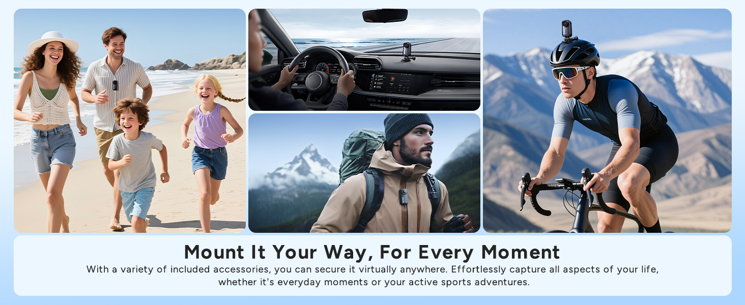 - [Hands-Free Filming with Magnetic Mount] Experience true filming freedom with this wearable camera. The powerful magnetic mount lets you instantly stick it to any metal surface—gym equipment, railings, or your car—for incredible, unique angles. For more traditional setups, the kit includes a lanyard for quick access and a handy lapel clip to turn it into a discreet body worn camera. With dedicated mounts included, it's the perfect mini body camera for versatile, hands-free recording from any perspective.