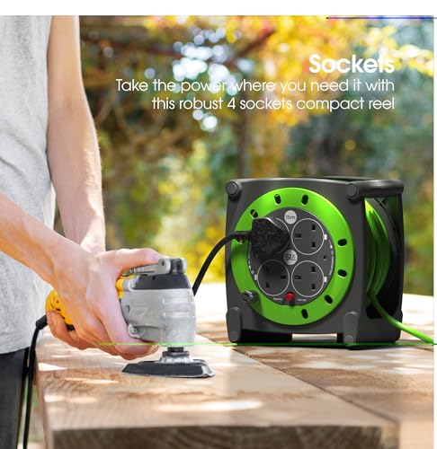 ✔️ BRIGHT CABLE FOR SAFETY: The bright green cable increases visibility while you work, making it easier to spot and avoid. The strong frame keeps the cable protected when stored and helps reduce the risk of trips, snags or accidental damage during use.