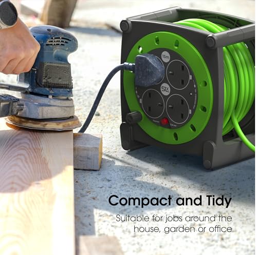 ✔️ MULTI PURPOSE POWER: A durable 4 socket reel from SLx designed for home, garden and workshop use. The long 15m cable provides excellent reach for powering tools, lawn mowers and equipment outdoors or indoors. Strong construction ensures safe and dependable power when you need it.