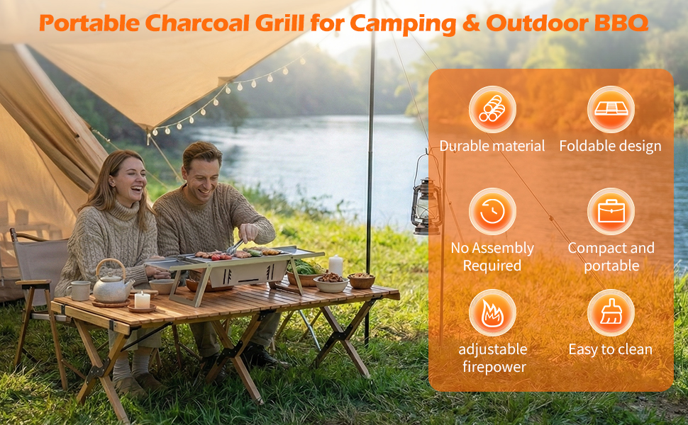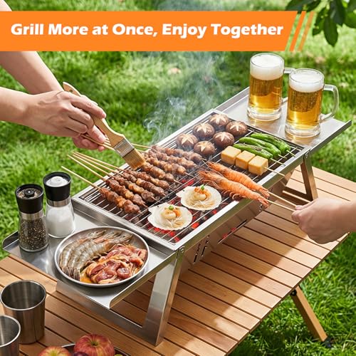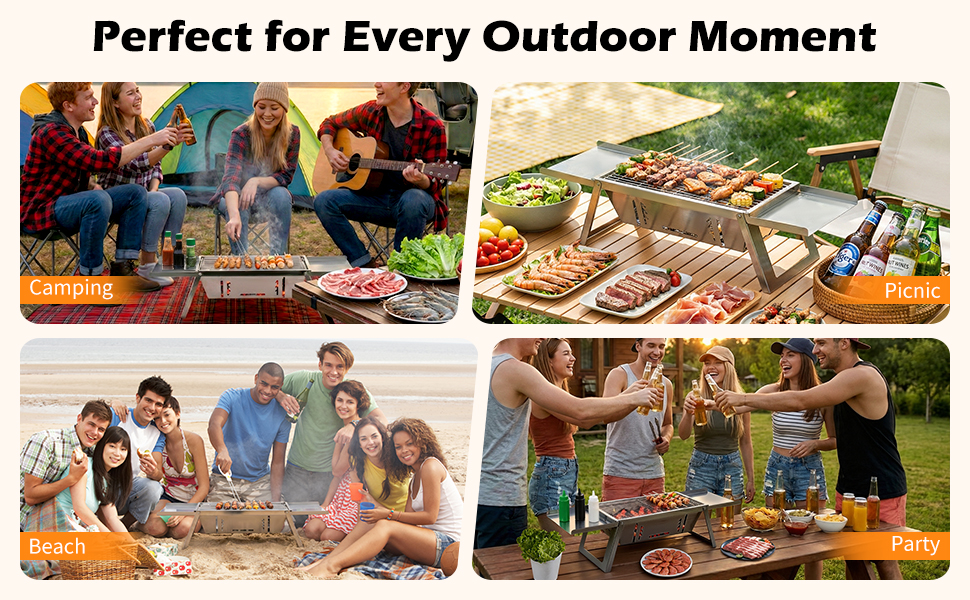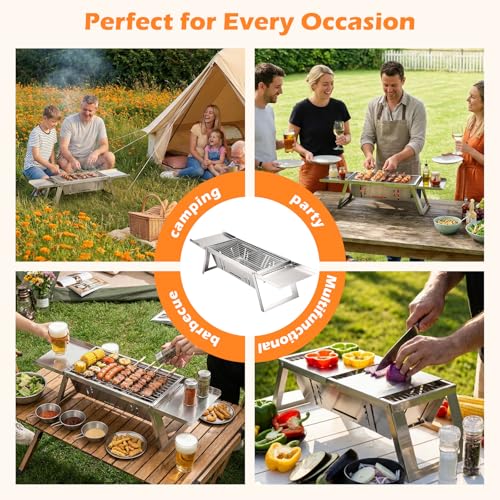 【Versatile for Camping & Outdoor Cooking】When fully unfolded, this portable barbecue measures 28.03 × 6.41 × 8.07 in (71.2 × 16.3 × 20.5 cm), offering ample cooking space while remaining compact. Suitable for camping BBQ, backyard grilling, beach barbecues, picnics, and other outdoor activities.