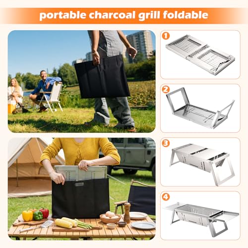 【Foldable & Ultra-Compact Design】This small portable BBQ features a slim, foldable structure for easy storage and transport. As a mini foldable BBQ and portable charcoal grill, it folds down to 16.22 × 0.78 × 7.99 in, easily fitting into a backpack, car trunk, or camping gear box—perfect for travel and outdoor use.