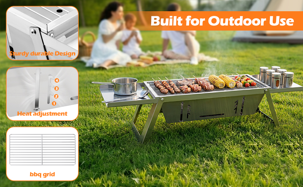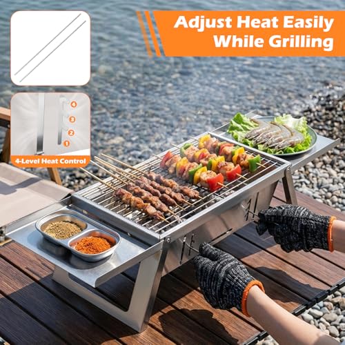【4-Level Adjustable Heat Control】Designed as a portable BBQ charcoal grill, this mini BBQ comes with a practical 4-level heat control system for precise fire height adjustment. Ideal for grilling meat, vegetables, or skewers on a table top BBQ or outdoor surface.