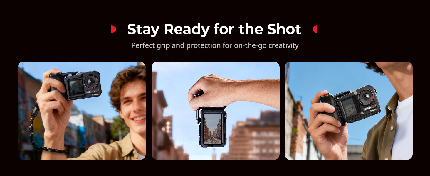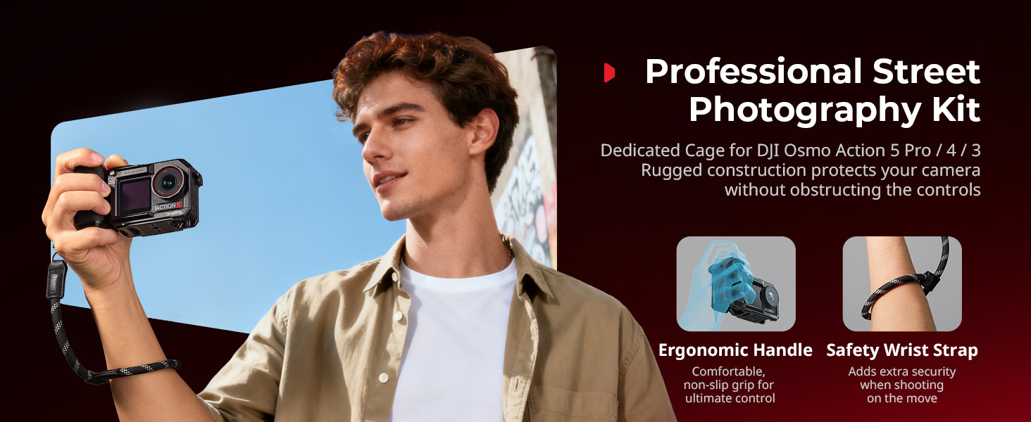 - 【For DJI Osmo Action 5 Pro / 4 / 3】SmallRig Street photography grip kit 5602 is specifically designed for DJI Osmo Action 5 Pro/4/3 street photography. The handle+cage combo instantly transforms into a DSLR-like stable grip